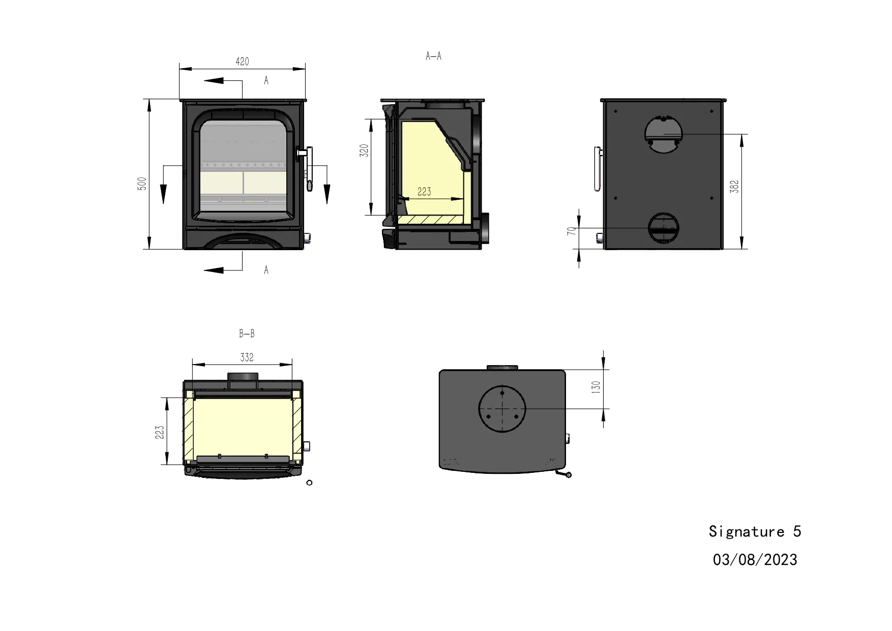 Signature Stoves are made from up to 8mm laser cut Q235B carbon steel and all have a heavy duty 30mm thick virgin ore, cast iron door.